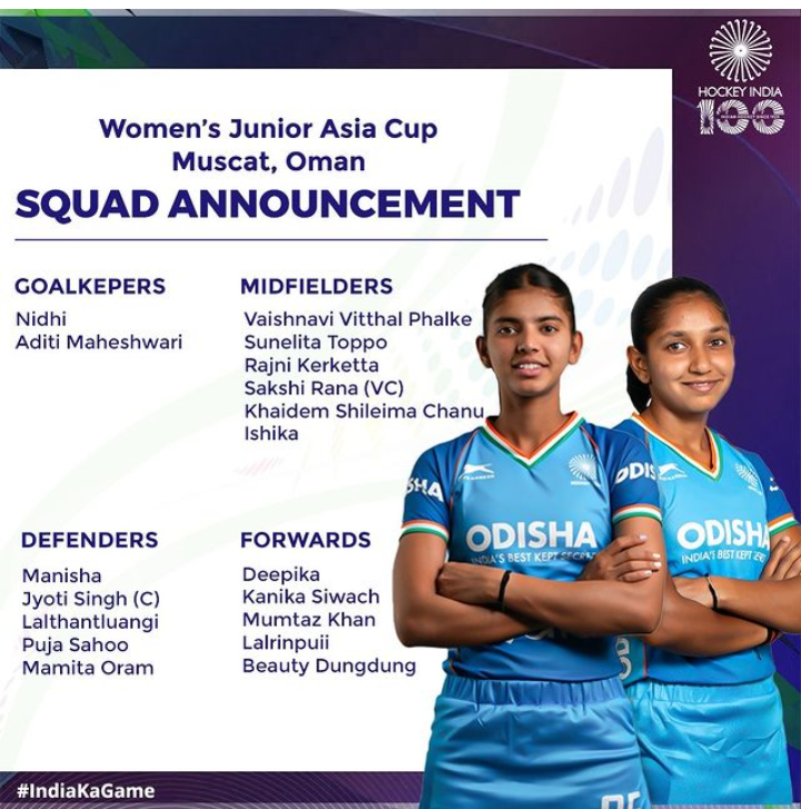 With immense joy and gratitude, we proudly share that four remarkable women athletes—Kanika Siwach, Manisha, Nidhi, and Sakshi Rana—from our Pritam Siwach Sports Promotion Foundation have been selected to represent the junior Indian women's hockey team in the upcoming Junior Asia Cup competition.